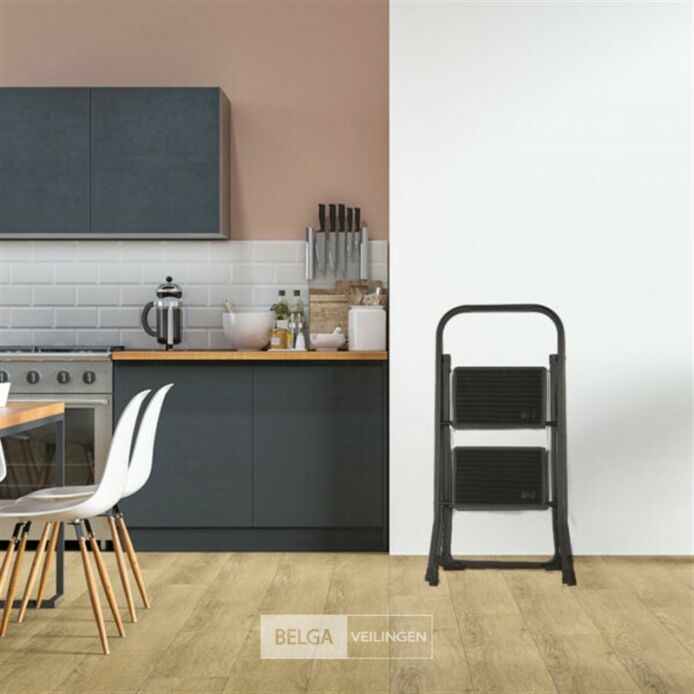 Handig opvouwbaar keukentrap/hulp-zwart - antislip - stevig-2 treden