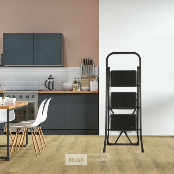 Handig opvouwbaar keukentrap/hulp-zwart - antislip - stevig-3 treden