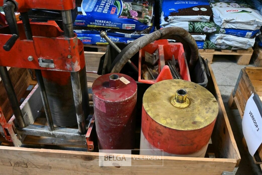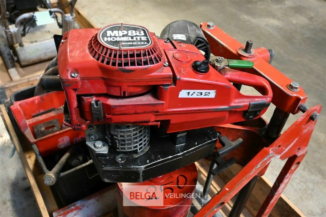 Klokboormachine met benzinemotor, merk Homolite, Type MP 88, sament met 3 klokboren van respectievelijk ø30 H 39 - ø25 H45 - ø20 H 40, De werking van het artikel is onbekend en niet getest.