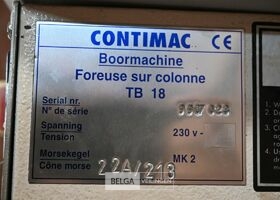 Contimac, Type: TB18, 220V, 1,1 Kw, Bouwjaar 1999 op metalen statief: 40 x 75 x 180 cm. OPGELET: De machine werd niet getest op werking en/of prestaties. Maak gebruik van de kijkdag om de goederen te inspecteren