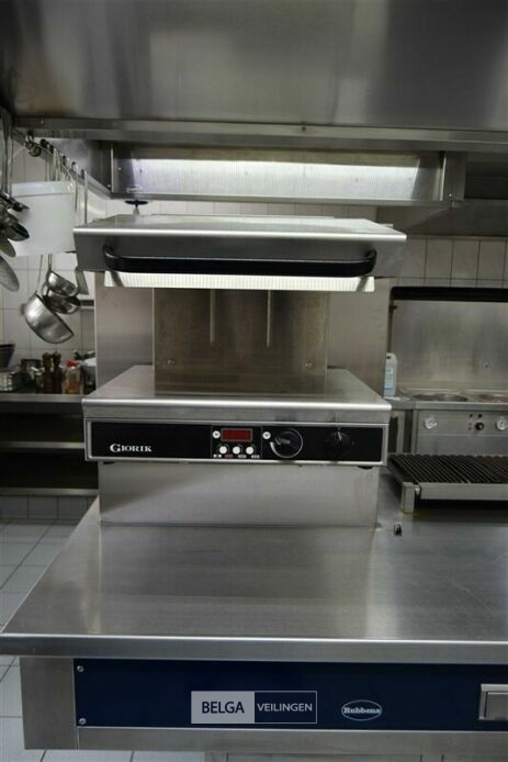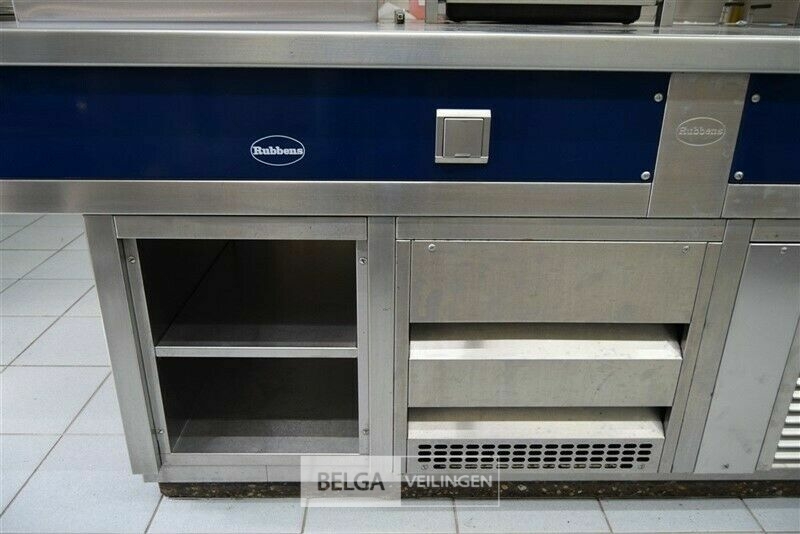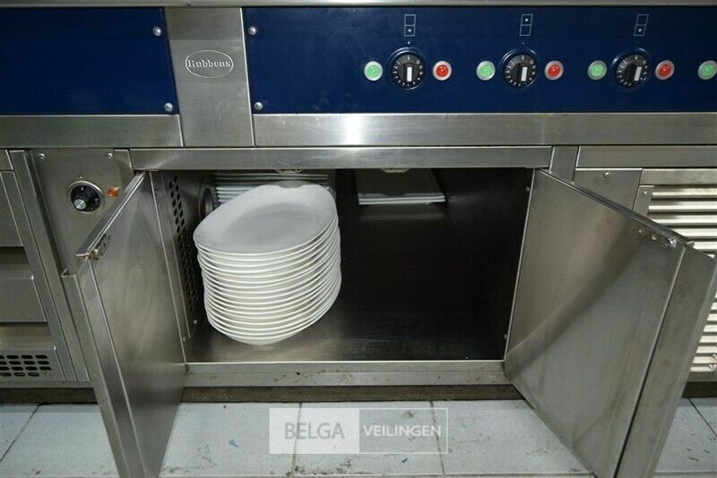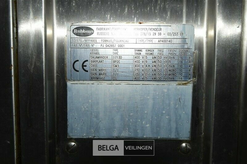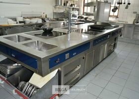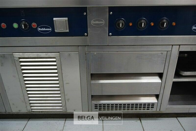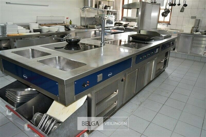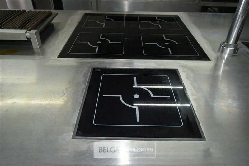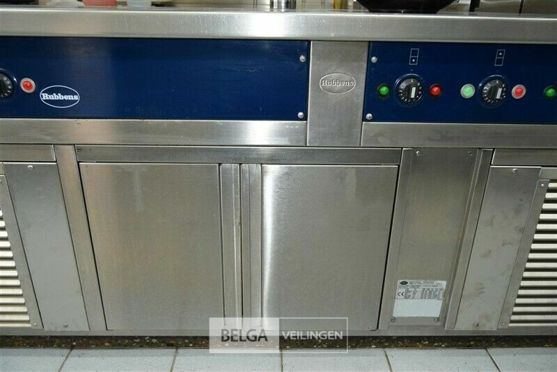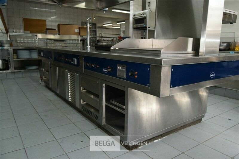 kookeiland RUBENS, nieuwprijs (± 58.000 € excl ) 140 x 400 x 91 cm met bakplaat 400 V, grill 400 V, salamander 400 V, 2x bain-marie 230 V, warmhoudkast 400 V