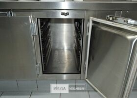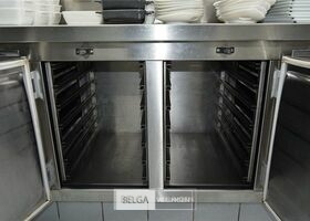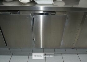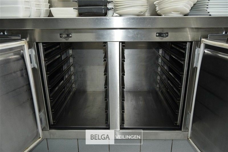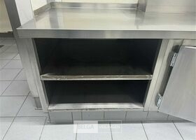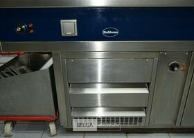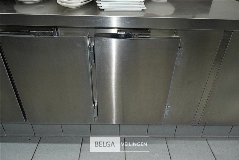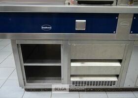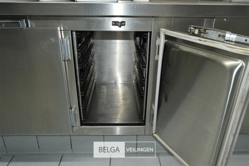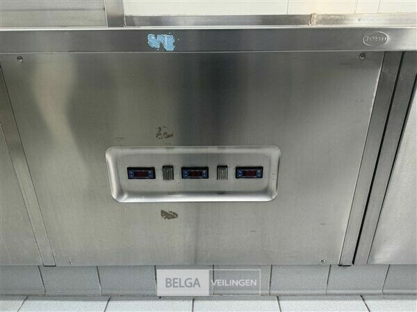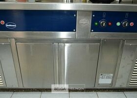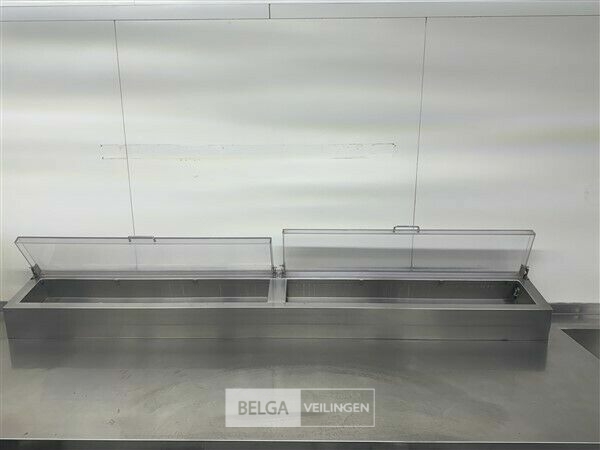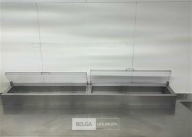 rvs warmhoudmeubel met opzet, 390 x 80 x 70 cm, opzet 40 cm, 2 open leggers (zonder inhoud)