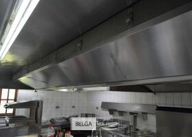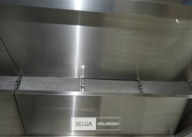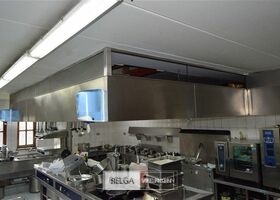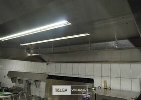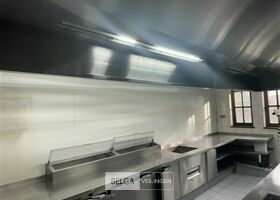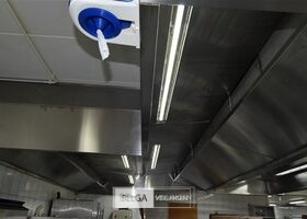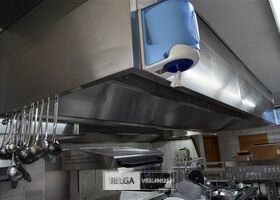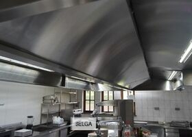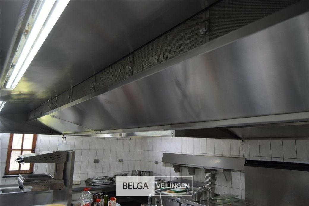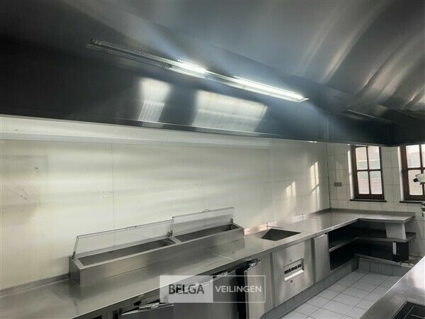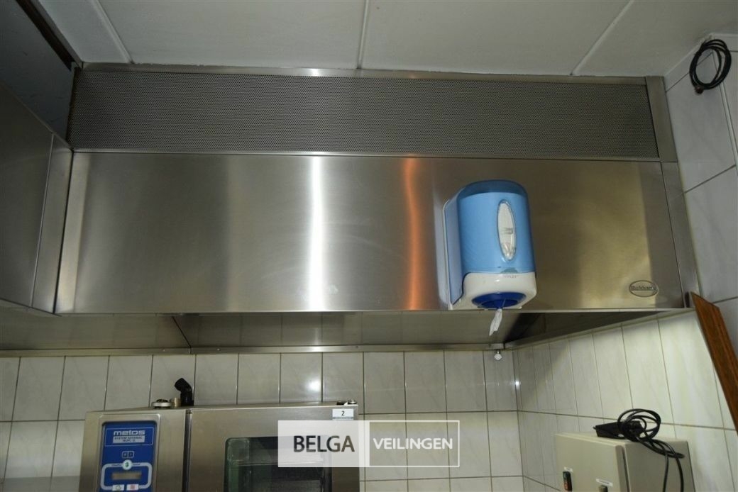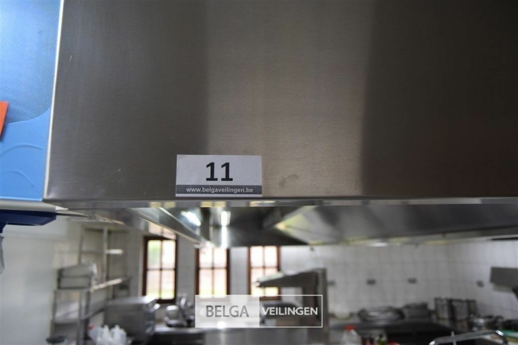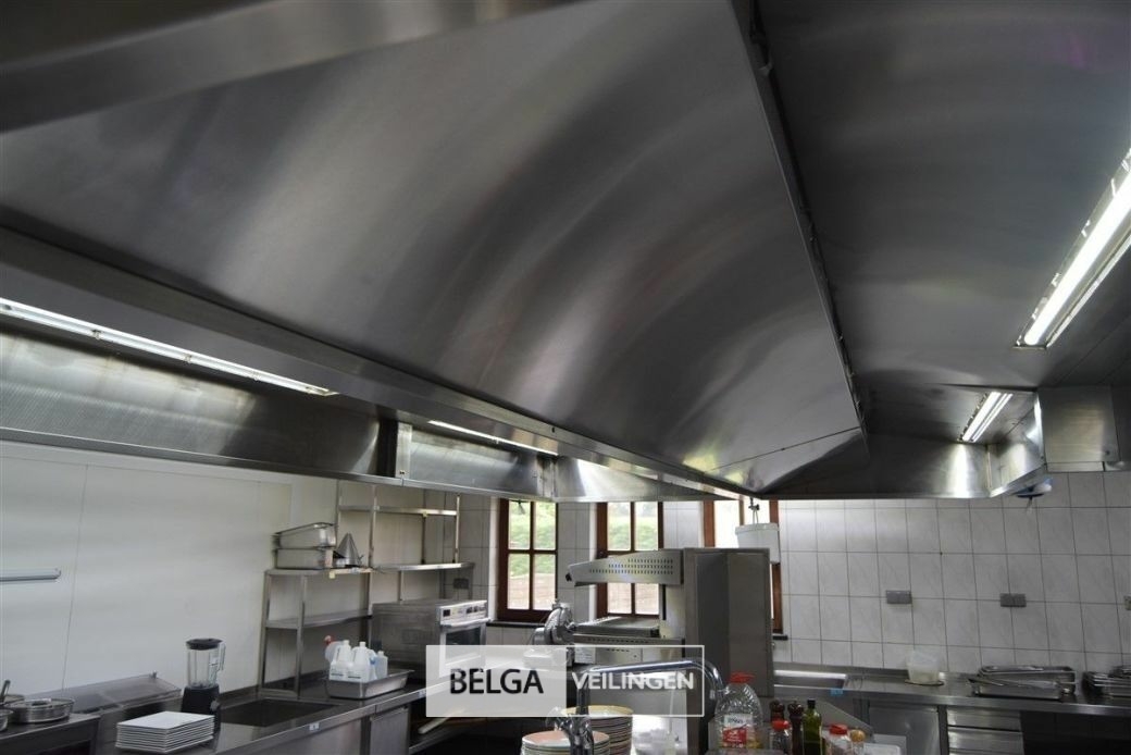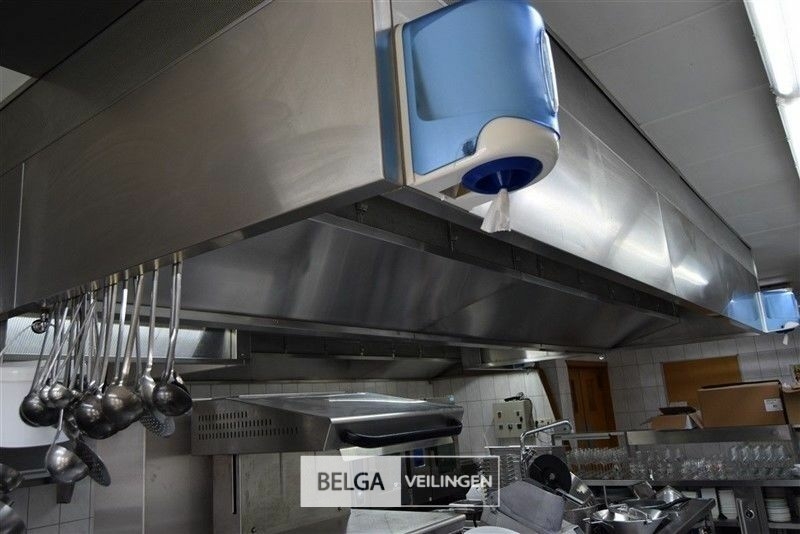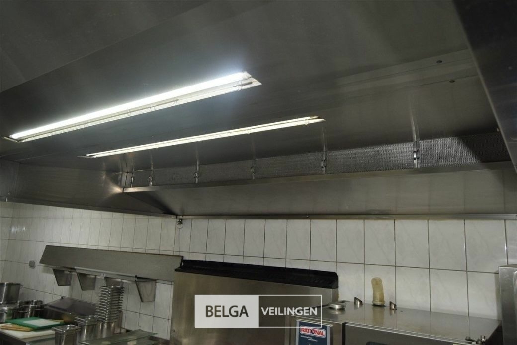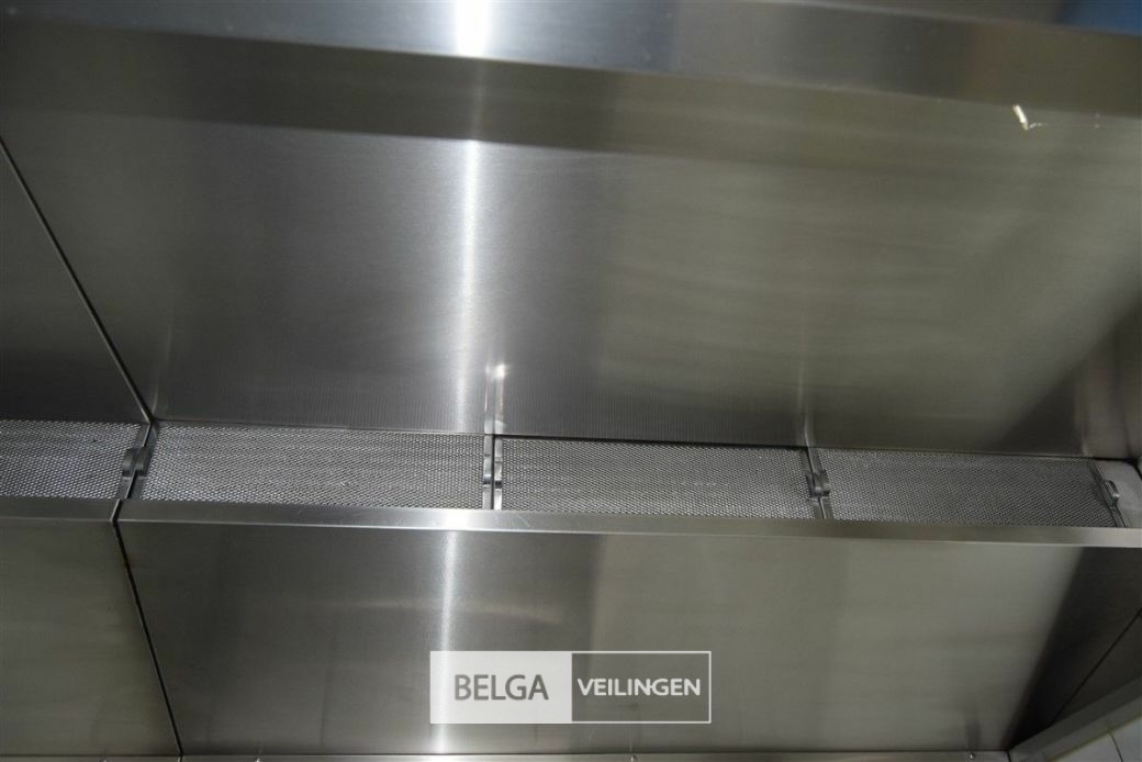 rvs dampkap in Z-vorm: boven de friteuse = 430 x 180 cm en boven keuken eiland = 440 x 250 cm