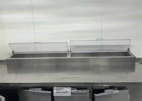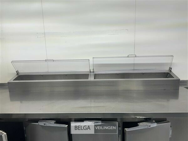 gekoelde werktafel, 380 x 80 x 70 cm met saladette, 4-deurskoeling, open rek, gekoelde spoelbak, ingebouwde koeling (zonder inhoud)