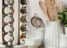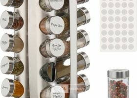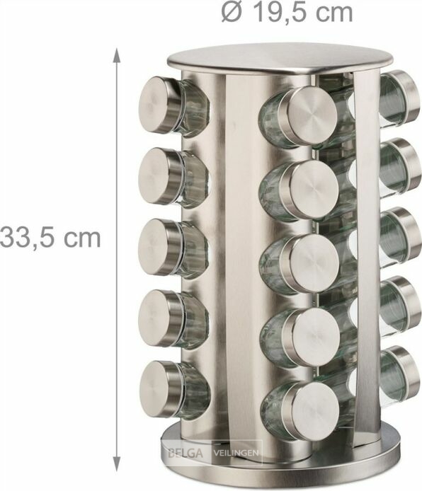 Rvs kruidenrek - draaibaar - 20 potjes - 40 stickers - staand - rond - rvs-retour van relaxdays