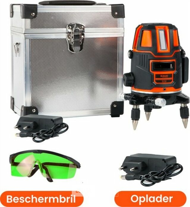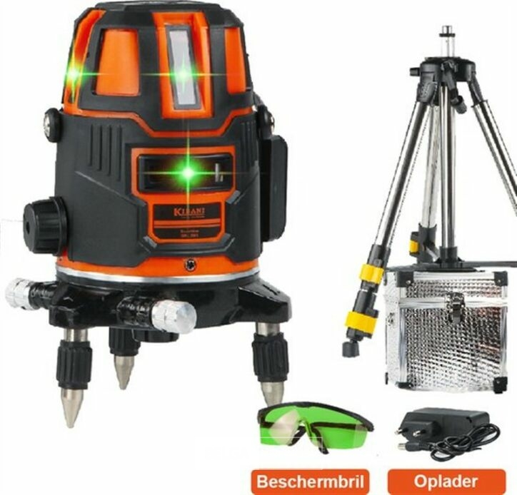 Kruislijnlaser met Statief - Bouwlaser Zelfnivellerend - Kruislijnlaser Zelfnivellerend - Kruislaser - Rotatielaser - Laserwaterpas - Lijnlaser - Oplaadbare Accu - Laserliners- Groen - met Statief en Opberg Box-Met de Kibani bouwlaser kun je 4 lijnen projecteren. Twee horizontale en twee verticale, dit geeft je de mogelijkheid om een lijn tegelijk te projecteren. De lijndikte is 1 tot 2 mm, dat verschilt per afstand van het oppervlak. De erg precieze nauwkeurigheid zorgt voor scherpe en rechte lijnen! Deze lijnlaser van Kibani is eigenlijk een musthave.