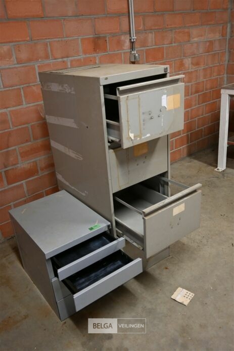 Ladeblok grijs metaal 42 x 60 x 50 en archtief kast grijs metaal afm 48 x 71 x 133 cm