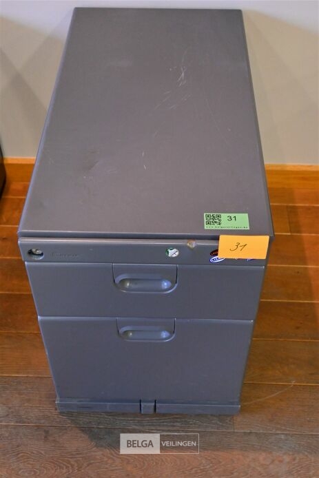 Ladeblok: Donkergrijs metaal, verrijdbaar, afm 40x76x57 cm, 3 Lades