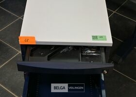 Ladenblok: Blauw met 4 donkergrijze lades en lichtgrijs blad, afm 44x57x58 cm, verrijdbaar
