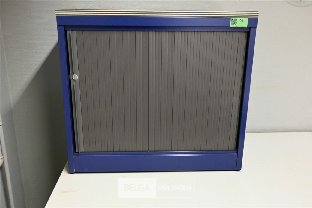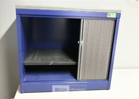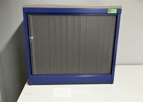 Lage kast, blauw met donkergrijze roldeuren / 1 legger, afm 80 x 48 x 73 cm