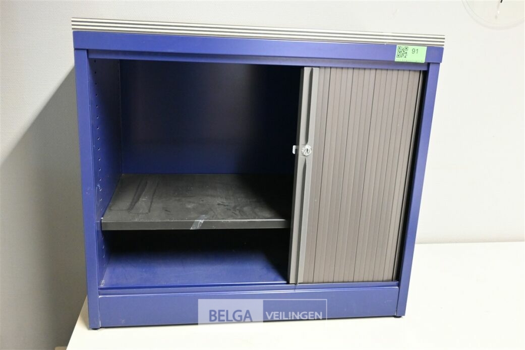 Lage kast, blauw met donkergrijze roldeuren / 1 legger, afm 80 x 48 x 73 cm