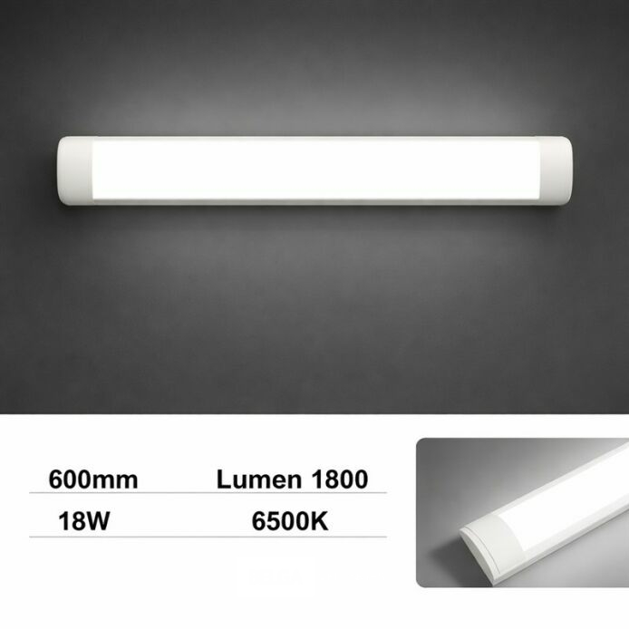 100 x LED-Batten 18W – 60cm – 6500K – LED-lichtBatten – Koppelbaar – Vermogen: 18W – Kleurtemperatuur: 6500K (koud wit) – Lumen: 1800 – IP20 Stofdicht – Krachtige lichtstroom, ideaal voor grote ruimtes en veeleisende omgevingen – Stofdicht – Biedt eenDuurzaam en betrouwbaar licht – Lengte: 60 cm – Afmetingen: 600 x 38 x 61 mm – Beamingshoek: 120° – Spanning: 170-260V (50/60Hz) – Levensduur: 30.000 uur – Inclusief lichtbron – Garantie: 2 jaar – Geschikt voor gebruik binnenshuis.