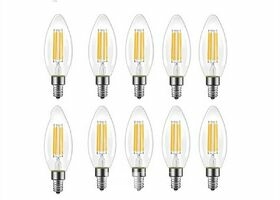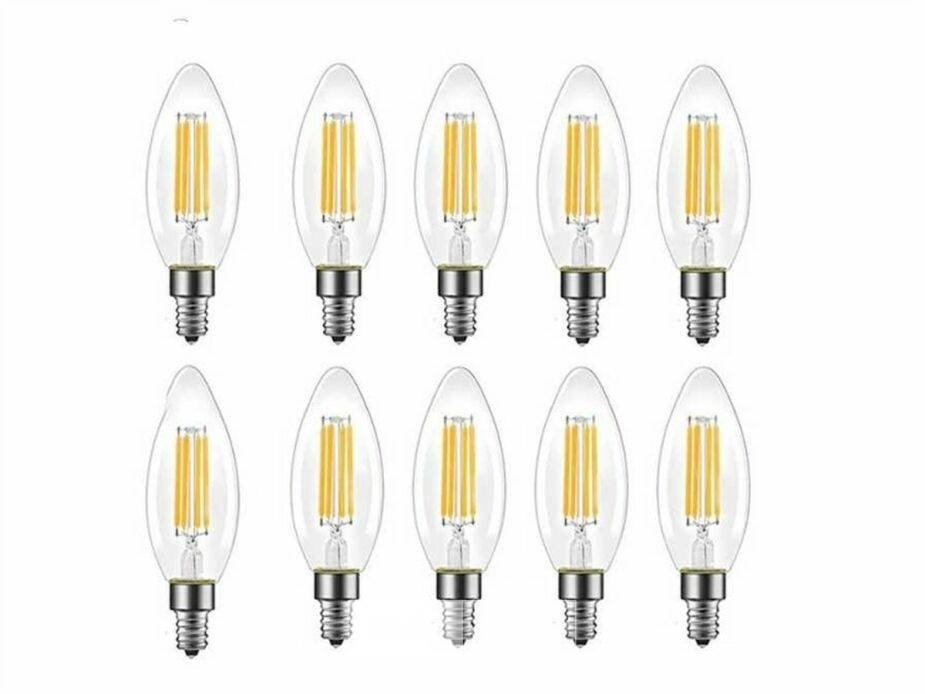 50 x C35 LED-gloeidraadlamp – 6W – E14 – Dimbaar – 2700K – Decoratieve vlamstijl – E14 fitting staNdard – Variabele intensiteit voor flexibele verlichting – Kleurtemperatuur 2700K (warm wit) – Lichtvermogen 500 lumen – Vervangt een gloeilamp van 50W – LED-type: Filament – Afmetingen: 35 x 112 mm – Spanning: 85-240 V – Hoek320° bundel – Levensduur 30.000 uur – IP20 klasse, gebruik binnenshuis – Energiezuinig met strak design