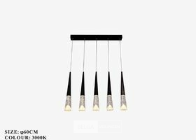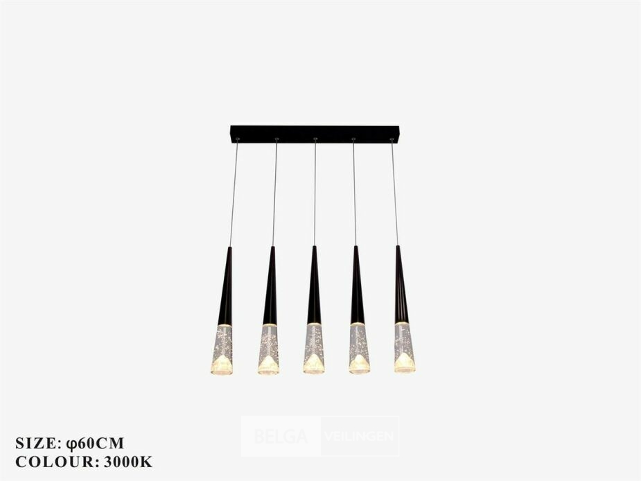 LED hanglamp model B043/5 – Kleurtemperatuur 3000K (warm wit) – BreedteA: 600 mm – In hoogte verstelbaar – Lichtbron: geïntegreerde LED-strip – Voltage: 220-240V (50/60 Hz) – Inclusief montageset – Perfect geschikt voor moderne binnenverlichting: eetkamer, woonkamer, keuken of kantoor – 3 jaar garantie.