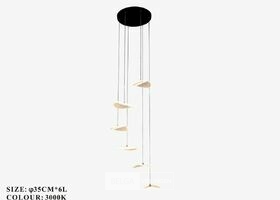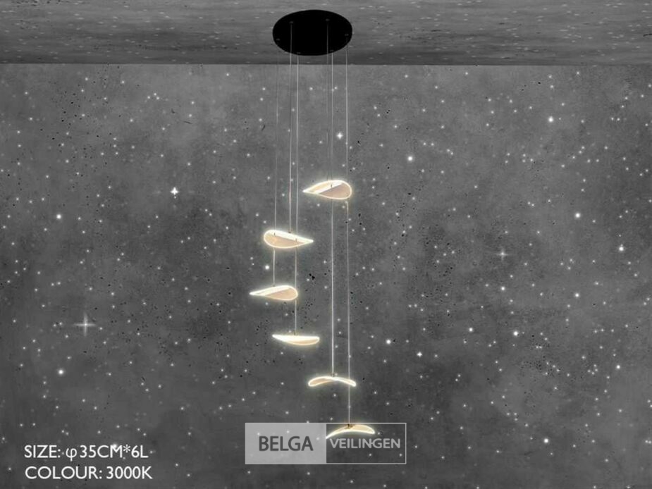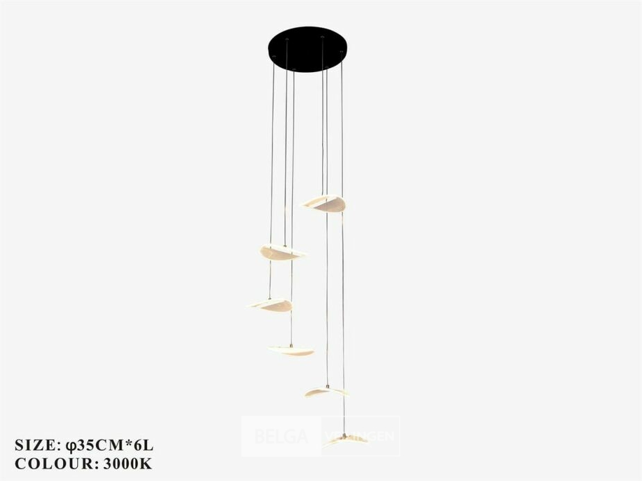 LED hanglamp model B060/6 – Kleurtemperatuur 3000K (warm wit) – Diameter: 350 mm – In hoogte instelbaarE – Lichtbron: geïntegreerde LED-strip – Spanning: 220-240V (50/60 Hz) – Inclusief montageset – Ontworpen voor moderne en stijlvolle binnenverlichting – Ideaal voor woonkamer, eetkamer, slaapkamer of kantoor – 3 jaar garantie.