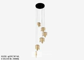 LED hanglamp model B063/6 – Kleurtemperatuur 3000K (warm wit) – Diameter: 350 mm – In hoogte verstelbaar – Lichtbron: geïntegreerde LED strip – TensioN: 220-240V (50/60 Hz) – Inclusief montageset – Geschikt voor verfijnde binnenverlichting: woonkamers, slaapkamers, eetkamers of kantoren – 3 jaar garantie.