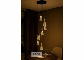 LED hanglamp model B073/8 – Kleurtemperatuur 3000K (warm wit) – Diameter: 400 mm – In hoogte verstelbaar – BronLicht: geïntegreerde LED-strip – Voltage: 220-240V (50/60 Hz) – Inclusief montageset – Ideale binnenverlichting voor woonkamers, eetkamers, slaapkamers of werkruimtes – 3 jaar garantie.