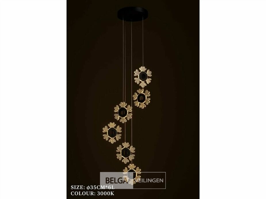 LED hanglamp model B074/6 – Kleurtemperatuur 3000K (warm wit) – Diameter: 350 mm – In hoogte verstelbaar – BronLicht: geïntegreerde LED-strip – Spanning: 220-240V (50/60 Hz) – Inclusief montageset – Ideale binnenverlichting voor woonkamers, eetkamers, slaapkamers of kantoren – 3 jaar garantie.