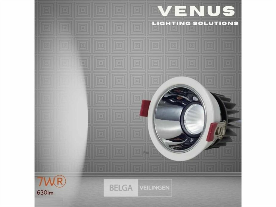 100 x Inbouw LED Spot – Kleur: wit/zilver (UG-07) – TYpe: COB – Vermogen: 7W – Lichtstroom: 630 lumen – Kleurtemperatuur: 6500K (koud wit) – IRC >80 – Beamhoek: 40° – Afmetingen: Ø 86 x 74 mm (installatiediameter: Ø 75 mm) – Spanning: 175-265V – Materiaal: metaal – ElWit/zilver – Beschermingsgraad: IP20 – Geschikt voor gebruik binnenshuis – Levensduur: 25.000 uur – Effectieve verlichting voor middelgrote ruimtes.