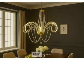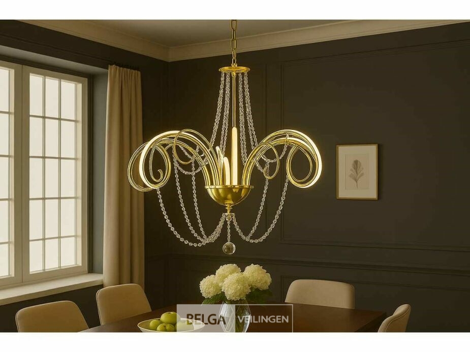 LED-kroonluchter model 6017/8 – Elegante gouden afwerking – Uitgerust met 8 lampen voor een totaal vermogen van 64W (8W per licht) – Kleurtemperatuur 4000K (neutraal wit) voor natuurlijke en gebalanceerde verlichting – Afmetingen: 640 × 680 mm – CoNçu van hoogwaardig aluminium – Voltage: 220V – Ideaal voor moderne en verfijnde binnenverlichting, perfect voor woonkamers, eetkamers of stijlvolle ruimtes.