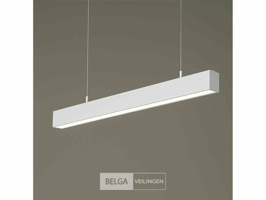 4 x witte binnenlamp van aluminium en PC meet 1200 × 75 × 50 mm en geeft 4.200 lumen met een 120° stralingshoek. De lichtkleur is schakelbaar tussen 3000K, 4000K en 6500K. Geschikt voor binnengebruik (IP20) en in hoogte verstelbaar via de meegeleverde staaldraadophanging. Werkt op 170–265V (50/60Hz) en heeft een levensduur van 70.000 uur.