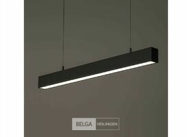 4 x Zwarte binnenlamp van aluminium en PC meet 1200 × 75 × 50 mm en geeft 4.200 lumen met een 120° stralingshoek. De lichtkleur is schakelbaar tussen 3000K, 4000K en 6500K. Geschikt voor binnengebruik (IP20) en in hoogte verstelbaar via de meegeleverde staaldraadophanging. Werkt op 170–265V (50/60Hz) en heeft een levensduur van 70.000 uur.