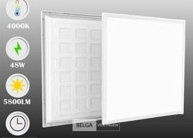 16 x LED-paneel 45W – 60 × 60 cm – 4200K – Super ECO – Wattage: 45W, Lichtopbrengst: 3375 lm, Kleurtemperatuur: 4200K (Neutraal wit), Spanning: 175–265 V AC / 50–60 Hz, LED-type: SMD LED, Kleur: Wit, Beschermingsgraad: IP20 (droge binnenruimtes), Lichtspreidingshoek: 120°, Afmetingen: 595 × 595 × 35 mm, Detail: Backlight paneel, Levensduur: ± 20.000 uur – IRC: >80 Ra – LED-type:SMD – Beamhoek: 120° – Inclusief transformator – Efficiënte en gelijkmatige lichtverdeling – Super ECO, energiezuinig en milieuvriendelijk ontwerp – Geschikt voor gebruik binnenshuis.