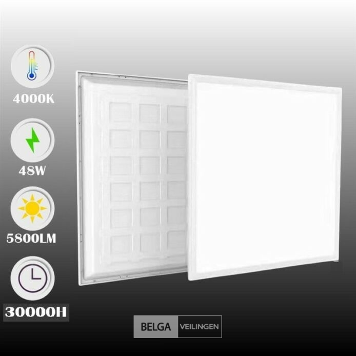 32 x LED-paneel 45W – 60 × 60 cm – 4200K – Super ECO – Wattage: 45W, Lichtopbrengst: 3375 lm, Kleurtemperatuur: 4200K (Neutraal wit), Spanning: 175–265 V AC / 50–60 Hz, LED-type: SMD LED, Kleur: Wit, Beschermingsgraad: IP20 (droge binnenruimtes), Lichtspreidingshoek: 120°, Afmetingen: 595 × 595 × 35 mm, Detail: Backlight paneel, Levensduur: ± 20.000 uur – IRC: >80 Ra – LED-type:SMD – Beamhoek: 120° – Inclusief transformator – Efficiënte en gelijkmatige lichtverdeling – Super ECO, energiezuinig en milieuvriendelijk ontwerp – Geschikt voor gebruik binnenshuis.
