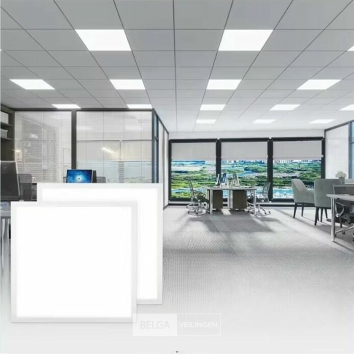 32 x LED-paneel 45W – 595 × 595 mm – 6400K – Super ECO – Wattage: 45W, Lichtopbrengst: 3375 lm, Kleurtemperatuur: 6400K (Koud wit), Spanning: 175–265 V AC / 50–60 Hz, LED-type: SMD LED, Kleur: Wit, Beschermingsgraad: IP20 (droge binnenruimtes), Lichtspreidingshoek: 120°, Afmetingen: 595 × 595 × 35 mm, Detail: Backlight paneel, Levensduur: ± 20.000 uur – IRC: >80 Ra – LED-type:SMD – Beamhoek: 120° – Inclusief transformator – Efficiënte en gelijkmatige lichtverdeling – Super ECO, energiezuinig en milieuvriendelijk ontwerp – Geschikt voor gebruik binnenshuis.