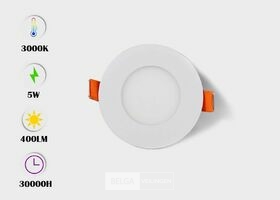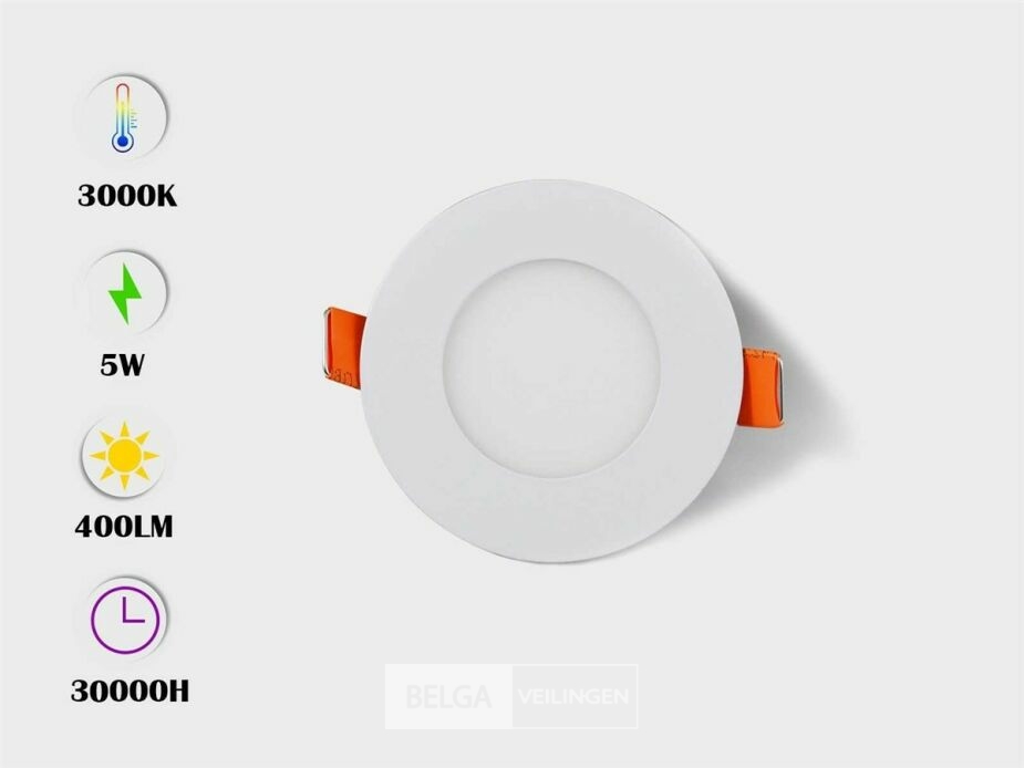 50 x LED-paneel 5W LED SMD - Inbouw - rond - 3000K - Inbouw LED-paneel - 5W - LED-type: SMD - Vorm: rond - Kleurtemperatuur: 3000K (Wit) - PuLichtsterkte: 400 lumen - Spanning: 220-240 V - Beschermingsgraad: IP20 - Levensduur: 30.000 uur - Inclusief stuurprogramma - Afmetingen: 85 mm x 20 mm - Montagediameter: 70 mm - Beamingshoek: 120° - Geschikt voor gebruik binnenshuis