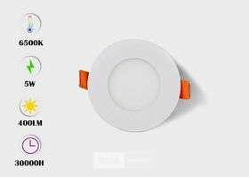 50 x LED-paneel 5W LED SMD - Inbouw - rond - 6500K - Inbouw LED-paneel -5W - LED-type: SMD - Vorm: rond - Kleurtemperatuur: 6.500 K (koud wit) - Lichtvermogen: 400 lumen - Spanning: 220-240 V - Beschermingsgraad: IP20 - Levensduur: 30.000 uur - Inclusief stuurprogramma - Afmetingen: 85 mm x 20 mm - DiaMontagemeter: 70 mm - Beamingshoek: 120° - Geschikt voor gebruik binnenshuis