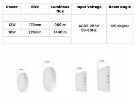 10 x Rond LED-paneel op Oppervlakte – Vermogen: 12W – LED-type: SMD – Kleurtemperatuur: 6500K (koud wit) – Lichtstroom: 960 lumen – Afmetingen: 160 x 28 mm – Spanning: 220-240V (50/60 Hz) – IP20 – Levensduur: 30.000 uur – Beamhoek: 40° – Driver en montageset inbegrepen – Geschikt voor gebruik binnenshuis, ideaal voor kantoren, winkels, gangen en keukens.