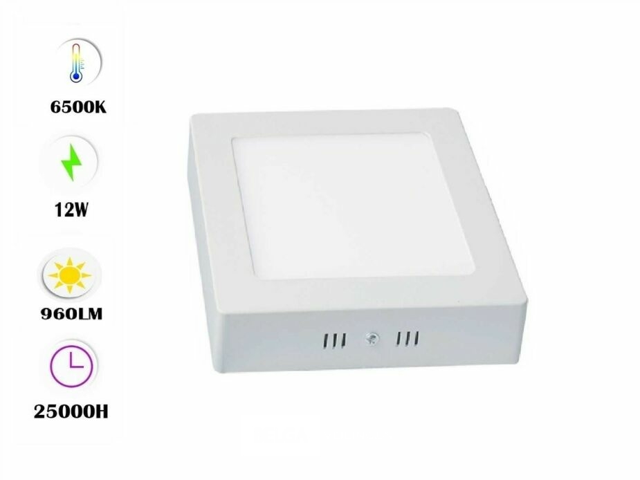 10 x Vierkant LED-paneel met opbouwmontage – Vermogen 12W – LED-type: SMD – Kleurtemperatuur 6500K (koud wit) – Lichtstroom: 960 lumen – Afmetingen: 160 x 28 mm – Spanning: 220-240V (50/60 Hz) – IP20 – Levensduur: 30.000 uur – Beamhoek: 40° – Inclusief driver en montageset – Geschikt voor gebruik binnenshuis, ideaal voor kantoren, winkels, gangen en keukens.