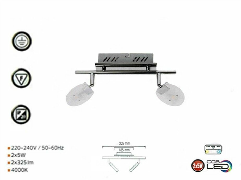 4 x plafond LED 2 spots model HL7162L – Maximaal vermogen 2 x 5W – Kleurtemperatuur 4000K (neutraal wit) – Lichtstroom: 650 lumen – Afmetingen: 305 x 90 mm – Bescherming: IP20 – Kleur: Zilver – Spanning: 220-240V (50/60 Hz) – Inclusief lampen – ConvZijn perfect voor moderne en stijlvolle verlichting in uw binnenruimtes: woonkamers, slaapkamers, kantoren en gangen.