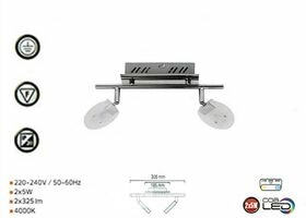 8 x LED plafondlampen 2 spots model HL7162L – Maximaal vermogen 2 x 5W – Kleurtemperatuur 4000K (neutraal wit) – Lichtstroom: 650 lumen – Afmetingen: 305 x 90 mm – Bescherming:IP20 – Kleur: Zilver – Spanning: 220-240V (50/60 Hz) – Inclusief lampen – Perfect geschikt voor moderne en stijlvolle verlichting in uw binnenruimtes: woonkamers, slaapkamers, kantoren en gangen.