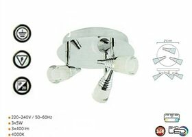 3 x LED plafondlampen model DI01 – Max. vermogen 3 x 5W – Kleurtemperatuur 4000K (neutraal wit) – Lichtstroom: 975 lumen – Afmetingen: Ø 210 mm – Kleur: Zilver – Spanning: 220-240V (50/60 Hz) – Bescherming: IP20 – Inclusief lampen – Ideaal voorR een binnenopstelling: woonkamers, kantoren, winkels of gangen.
