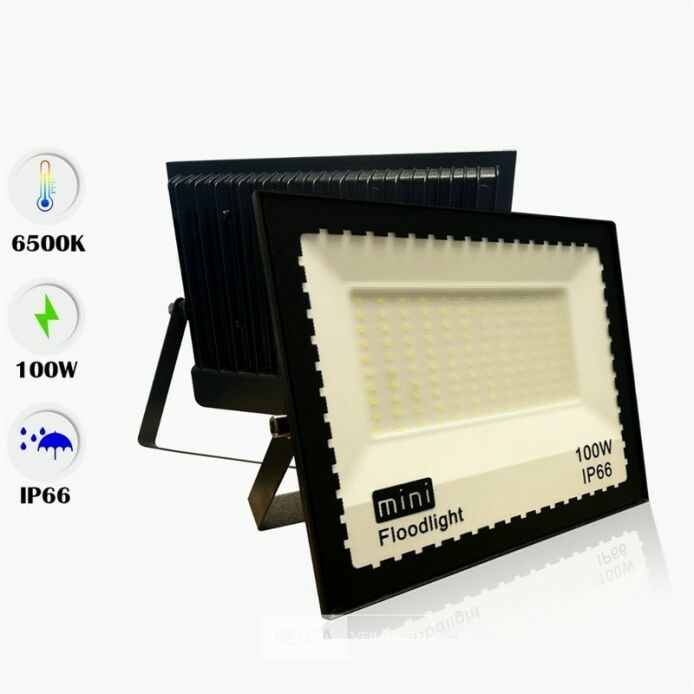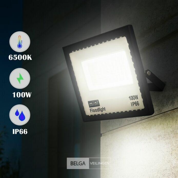 6 x LED-spot – Vermogen: 100W – Kleurtemperatuur: 6500K (Koud wit) – Lichtvermogen: 8000 lumen – Afmetingen: 260 x 210 x 35 mm – LED-type: Osram SMD – TensioN: 110-240V (50/60Hz) – Inclusief transformator – Levensduur: 30.000 uur – Beamingshoek: 120° – Beschermingsgraad: IP65 (dicht) – Geschikt voor gebruik binnen en buiten – Ideaal voor verlichting van grote oppervlakken.
