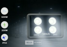 4 x LED Schijnwerper 200W – 6500K – IP65 – LED Schijnwerper pStroom – Vermogen: 200W – Lichtstroom: 20.000 lumen – Kleurtemperatuur: 6.500K (koud wit) – LED-type: COB – Beamhoek: 120° – Kleurweergave-index (IRC): >80 Ra – Biedt intense, gelijkmatige verlichting voor groteOppervlakken – IP65 (beschermd tegen stof en waterstralen) – LED driver inbegrepen – Afmetingen: 420 x 316 x 70 mm – Spanning: 85-265V (50/60Hz) – Levensduur: 30.000 uur – Geschikt voor gebruik binnen en buiten – Ideaal voor tuinen, gevelS, magazijnen en bedrijfsruimtes.