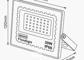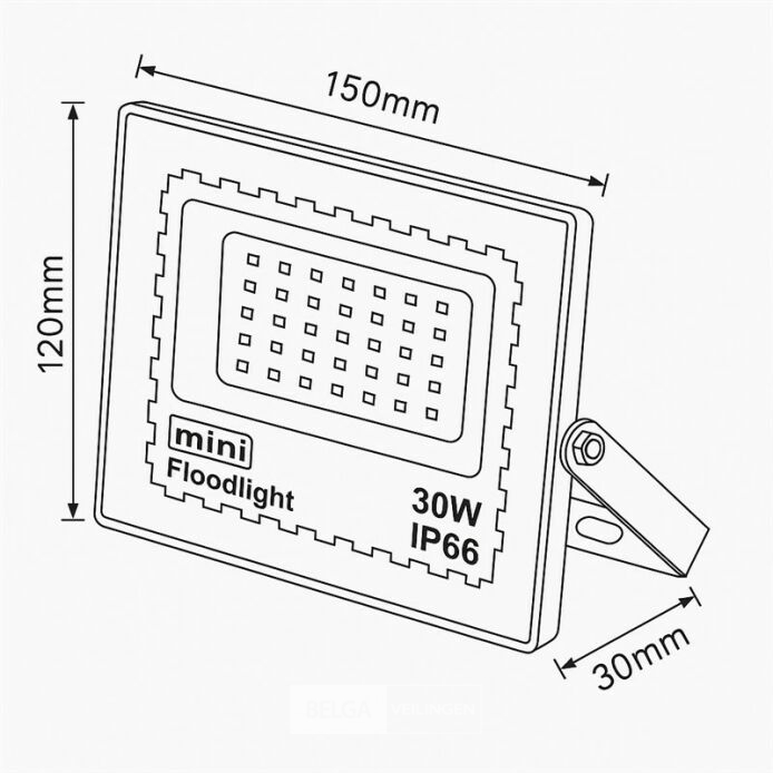 12 x LED-spot – Vermogen: 30W – LED-type: SMD – Kleurtemperatuur: 6500K (Koud wit) – Lichtstroom: 2400 lm – Afmetingen: 150 x 120 x 30 mm – Spanning: 110-240V (50/60Hz) – Inclusief transformator – Levensduur: 30.000 uur –Beaming Angle: 120° – Beschermingsgraad: IP65 (waterdicht, stof- en spatwaterdicht) – Geschikt voor gebruik binnen en buiten – Ideaal voor verlichting van grote oppervlakken.