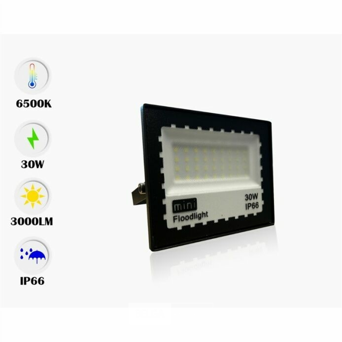 6 x LED-spot – Vermogen: 30W – LED-type: SMD – Kleurtemperatuur: 6500K (Koud wit) – Lichtstroom: 2400 lm – Afmetingen: 150 x 120 x 30 mm – Spanning: 110-240V (50/60Hz) – Inclusief transformator – Levensduur: 30.000 uur –Beaming Angle: 120° – Beschermingsgraad: IP65 (waterdicht, stof- en spatwaterdicht) – Geschikt voor gebruik binnen en buiten – Ideaal voor verlichting van grote oppervlakken.