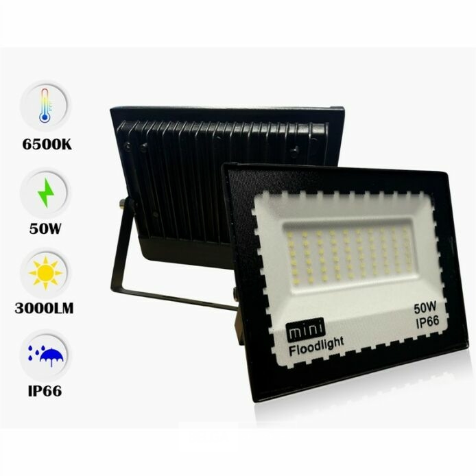 6 x LED-projector – Vermogen: 50W – LED-type: SMD – Kleurtemperatuur: 6500K (Koud Wit) – Lichtstroom: 4000 lm – Afmetingen: 180 x 145 x 30 mm – Spanning: 110-240V (50/60Hz) – TransformatieTeur inbegrepen – Levensduur: 30.000 uur – Beamingshoek: 120° – Beschermingsgraad: IP65 (waterdicht, stof- en spatwaterbestendig) – Geschikt voor gebruik binnen en buiten – Ideaal voor verlichting van grote oppervlakken.