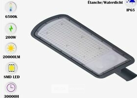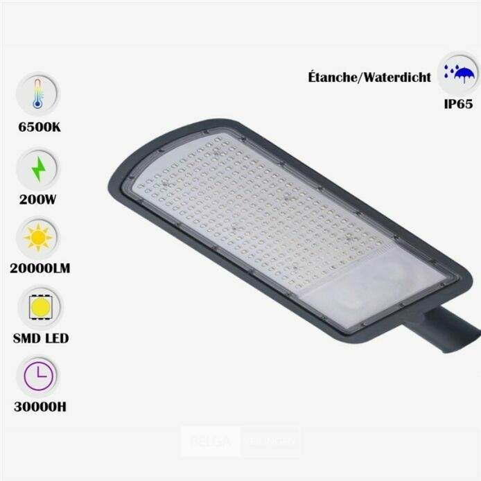 3 x LED-vloerlampen 200W – 6500K – IP65 – LED-vloerverlichting – Vermogen: 200W – Lichtstroom: 20.000 lumen – Kleurtemperatuur: 6.500K (koud wit) – TLED-stand: SMD – Beamhoek: 120° met lens – IP65 (waterdicht, beschermd tegen stof en waterstralen) – Afmetingen: 545 x 237 x 71 mm – Installatiediameter: Ø 60 mm (compatibel met standaard masten) – Materiaal: hoogwaardig aluminium – Te85-265V (50/60Hz) – Levensduur: 30.000 uur – Biedt krachtige, betrouwbare en veilige verlichting voor grote oppervlakken – Eenvoudige installatie – Ideaal voor gebruik buitenshuis.