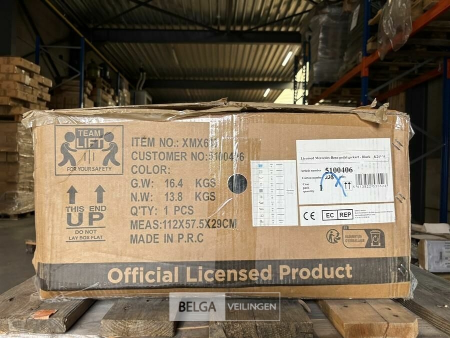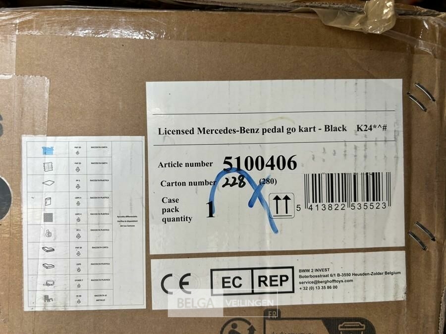 Licensed Mercedes-Benz pedal go kart black Niet-gecontroleerde Retouren. Dit product betreft een retourzending die niet is gecontroleerd op kwaliteit en werking. Het kan in perfecte staat zijn, maar er kunnen ook ontbrekende onderdelen, gebruikssporen of andere kleine gebreken zijn. Het product wordt verkocht in de staat waarin het is ontvangen. Geen garantie of retour mogelijk.