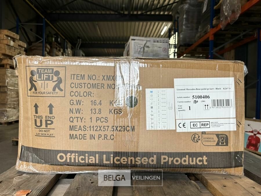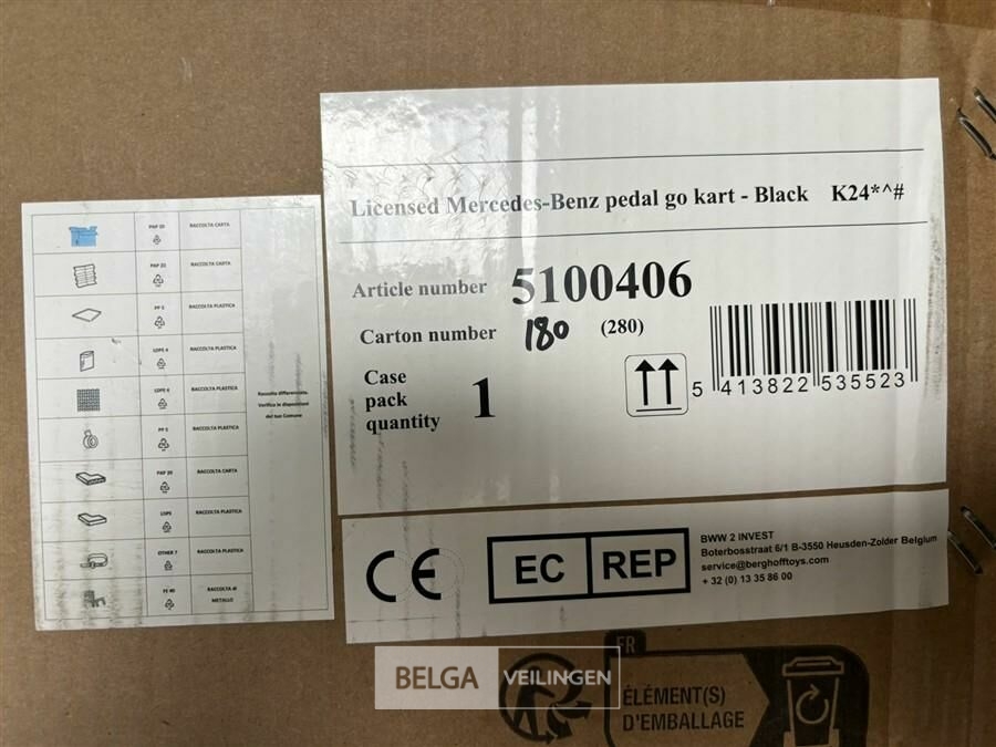 Licensed Mercedes-Benz pedal go kart black Niet-gecontroleerde Retouren. Dit product betreft een retourzending die niet is gecontroleerd op kwaliteit en werking. Het kan in perfecte staat zijn, maar er kunnen ook ontbrekende onderdelen, gebruikssporen of andere kleine gebreken zijn. Het product wordt verkocht in de staat waarin het is ontvangen. Geen garantie of retour mogelijk.