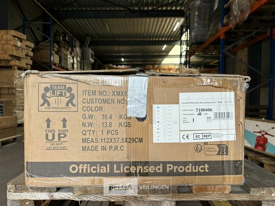 Licensed Mercedes-Benz pedal go kart black Niet-gecontroleerde Retouren. Dit product betreft een retourzending die niet is gecontroleerd op kwaliteit en werking. Het kan in perfecte staat zijn, maar er kunnen ook ontbrekende onderdelen, gebruikssporen of andere kleine gebreken zijn. Het product wordt verkocht in de staat waarin het is ontvangen. Geen garantie of retour mogelijk.