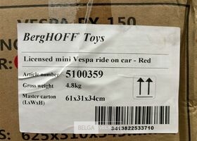 Licensed mini Vespa ride on car red Niet-gecontroleerde Retouren. Dit product betreft een retourzending die niet is gecontroleerd op kwaliteit en werking. Het kan in perfecte staat zijn, maar er kunnen ook ontbrekende onderdelen, gebruikssporen of andere kleine gebreken zijn. Het product wordt verkocht in de staat waarin het is ontvangen. Geen garantie of retour mogelijk.
