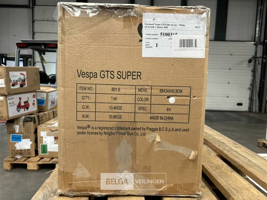 Licensed Vespa GTS ride on car white Niet-gecontroleerde Retouren. Dit product betreft een retourzending die niet is gecontroleerd op kwaliteit en werking. Het kan in perfecte staat zijn, maar er kunnen ook ontbrekende onderdelen, gebruikssporen of andere kleine gebreken zijn. Het product wordt verkocht in de staat waarin het is ontvangen. Geen garantie of retour mogelijk.