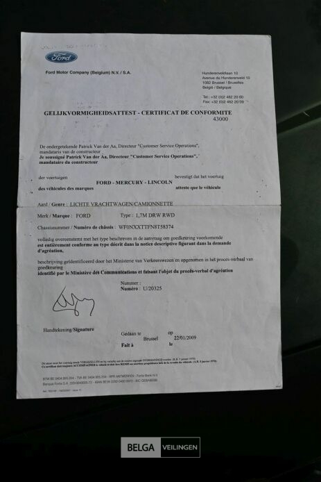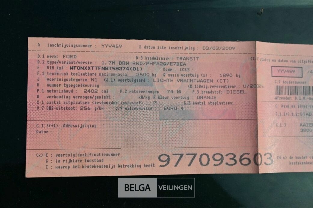 Lichte vrachtauto Ford Transit, 151.272 Km, bouwjaar: 2009, 74Kw, Laadvermogen 1610Kg, 2402cc, Kipbak, zowel in lengte as als zijwaarts, linker achterruit ontbreekt, alle boorddocumenten aanwezig. Batterij volledig ontladen