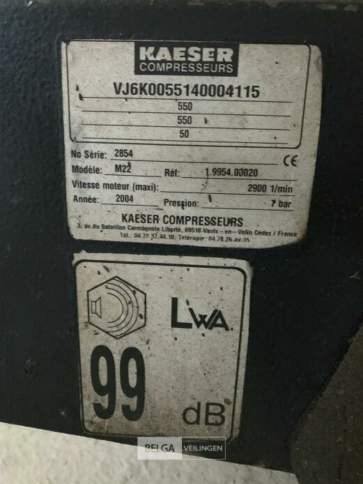 Luchtcompresseur, merk Kaeser, model M22, werkdruk 7 Bar, bouwjaar 2004, dieselmotor. Er zijn geevn verdere details bekend. Het aangeboden kavel werd niet onderzocht op gebreken en niet getest op werking. Maak gebruik van het kijkmoment om u te voorzien van de nodige indrukken.