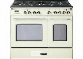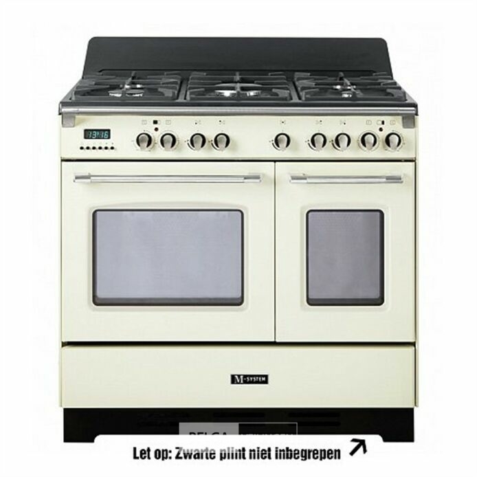 Fornuis,gas,90 cm,2 ovens,oud wit (creme)